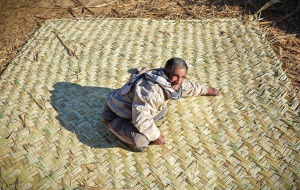 دستبافی از نی یا برگ خرما یا الیاف گیاهی دیگر. از کهنترین صنایع دستی ایران است و با ابزاری ساده چون کارد، قیچی، داس، درفش و انبر بافته میشود. براساس کاوشهای باستانشناسی در منطقۀ بینالنهرین، قدمت بوریا به هزارۀ پنجم پم برمیگردد. بافت بوریا از قدیم در اغلب شهرهای ایران رواج داشته است و توصیفهای کتاب حدودالعالم منالمشرق الیالمغرب (۳۷۲ق) گواهی بر این نظر است. تولیدات فرآوردههای حصیری، که امروز از نظر روش بافت، مواد اولیه و شکل متنوعاند، تحت تأثیر سنتهای محلی و فراوانی نوع الیاف سلولزی (گیاهی) هر منطقه است. این تولیدات عبارتاند از زیرانداز و پوشش سقف خانه، کَپَر (خانۀ سبدمانند بلوچی)، پرده، سبد، زنبیل، سفره، پاپوش، قفس، بادبزن، گلدان، کلاه، و انواع ظروف. محصولات دیگری نیز از نی خیزران میسازند، از جمله میز و صندلی، آباژور، کتابخانه، جاکفشی. بافت بوریا در ایران معمول است، بهویژه در مناطقی که نی، برگ درخت خرما و ساقههای گیاهان موجود باشد؛ ازجمله در خوزستان، سیستان و بلوچستان، هرمزگان، مازندران، گیلان، آذربایجان، خراسان، کردستان، بوشهر و برخی نواحی دیگر. غیر از حصیر و بوریا، بافتههای دیگری نیز از الیاف گیاهی تهیه میشود که عبارتاند از بامبو، بافتهشده از نی خیزران که بیشتر در گیلان و مازندران رایج است؛ مروار، تهیهشده از ساقۀ نازک درختان که بیشتر در گیلان و تهران رایج است؛ ترکهبافی، بافتهشده از ترکۀ درختان که بیشتر در خراسان رایج است؛ کپوبافی، بافتهشده از برگ درخت خرما که بیشتر در خوزستان رایج است؛ چمبافی، تهیهشده از ساقۀ گیاهی که بیشتر در آذربایجان رایج است؛ تولیدات مذکور بهروش بالا و پایین، ترکهای از زیر و ترکهای از رو، بافته میشوند که، با توجه به شکل و حجمِ وسیلۀ مورد نظر، نوع بافت بهشکل ششضلعی، لوزی، مثلثی، دایرهای و لولهای، بهصورت متقاطع یا موازی تغییر میکند. امروز، صنایع دستی سبدبافیِ طرقبه در مشهد، حصیربافیِ میناب، هرمزگان، بامبوبافیِ لاهیجان و کپوبافیِ دزفول شهرت خاص دارند.