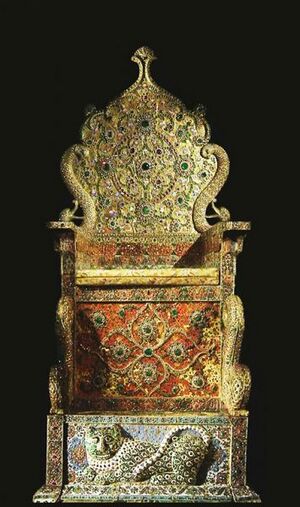 (یا: صندلی دوپله) اورنگ کوچک جواهرنشان دربارهای سلطنتی ایران از دورۀ فتحعلیشاه قاجار تا دورۀ رضاشاه پهلوی. برخی بهاشتباه این تخت را ساختۀ نادرشاه میدانند، اما از قراین پیداست که تخت نادری نیز همچون تخت طاووس به دست کُردان شمال خراسان افتاده، و قطعهقطعه شده است. تخت فعلی را که به فرمان فتحعلیشاه، گروهی از هنرمندان ایرانی، ظاهراً در همان زمانِ ساختِ تختِ طاووس، ساختهاند، از دوازده تکه چوب یا روکش طلای میناکاری جواهرنشان تشکیل شده که با بند و بست به یکدیگر متصل شدهاند. تکیهگاه تخت شبیه به دُم چترزدۀ طاووس است و دو طرف آن نقش دو اژدهای دَرهمپیچیده دیده میشود که دُمشان به شکل سر یک پرنده درآمده است. بالای سر این دو اژدها تاجی است. که وسط آن قطعهای یاقوت ۲۵ قیراطی نصب شده است. در دو طرف پلۀ اول تخت نیز، نقش دو اژدهاست. ترنجهای اسلیمی مشبک با نقش طوطیهای میناکاری از دیگر تزئینات این اثر تاریخی است. در تخت نادری ۲۲,۴۳۶ قطعه جواهر گوناگون بهکار رفته است. رضا شاه پهلوی روی تخت نادری تاجگذاری کرد. تخت نادری در موزۀ جواهرات ملی بانک مرکزی نگهداری میشود.