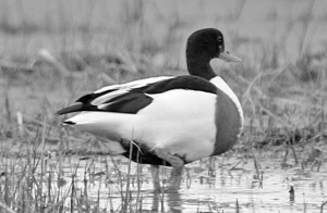 اردک[۱] Tadorna tadorna، از خانوادۀ اردک[۲]ها، راستۀ غازشکلان[۳]. این پرنده دارای سری سبز و سیاه، و منقاری قرمز است؛ بقیۀ پرهایش نشانهای نظرگیری از رنگهای سیاه، سفید، و قهوهای بلوطی دارد. طول اردک نر حدود ۶۰ سانتیمتر است و پراکنش وسیعی در اروپا و آسیا دارد. این پرنده ده تا دوازده تخم سفید در سوراخ خرگوشها، در سواحل شنی میگذارد و معمولاً در دهانههای گِلی خورها مشاهده میشود. در ایران، از خانوادۀ مرغابی یازده گونه یافت میشود که یکی از آنها تنجه است. قوی خر بارکِش، غاز، عروس غاز، و آنقوت از گونههای مهم این خانوادهاند.