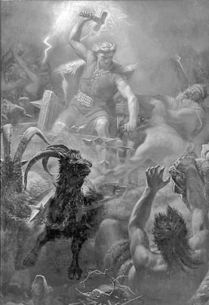 در اساطیر اسکاندیناوی و تیوتونی[۱]، خدای رعد. تور را در هیئت مردی با قدرت خارقالعاده تصویر کردهاند که از انسانها در برابر دیوان و غولان یخبندان دفاع میکند. پسر اودین[۲] و فریا[۳]، و از اِسیر[۴]ها (خدایان جنگجو) بود. کلمۀ انگلیسی ترزدی[۵] (پنجشنبه) از نام او اقتباس شده است. تور سه ابزار جادویی در اختیار داشت: پتک (رعد و برق)، دستکشهای آهنین برای بهکارگیری سلاح و کمربندی که نیروی او را نیمبرابر افزایش میداد. دو بز ارابهاش را میکشیدند. رومیان او را با ژوپیتر[۶] همانند میدانستند؛ کلمۀ ترزدی (در اصل تورزدی: روزتور) معادل لاتین جوویس دیئس[۷] (روز ژوپیتر) و فرانسوی ژودی[۸] است.