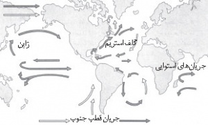 جریان سریع تودۀ آب دریا، براثرِ نیروی باد یا اختلاف چگالی آبِ ناشی از اختلاف دما یا شوری، بین دو ناحیه. جریانهای اقیانوس تاحدی باعثِ انتقال حرارت از استوا به قطبیناند و موجب تعادل حرارتی کره زمین میشوند.