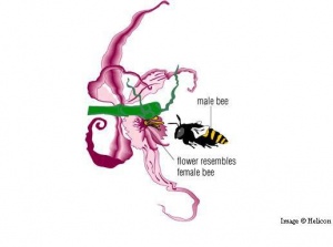جفتگیری حشرۀ نر با گل. این پدیده منجر به گردهافشانی[۱] گل میشود و در گیاهان تیرۀ ارکیده متداول است که گلهای بسیاری از گونههای آن شبیه گونهای خاص از زنبور ماده است. هنگام تلاش زنبور نر برای جفتگیری با گل، انبوه گردهها[۲] (مجموعۀ دانههای گرده) به بدن زنبور میچسبد و در تلاش بعدی زنبور برای جفتگیری مجدد با گل مادۀ دیگر، انبوه گردهها به کلاله[۳] آن گل منتقل میشوند.