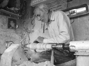 ساخت اشیای چوبی با تراشدادن چوب و با استفاده از چرخی با نام چرخ خراطی. به اعتقاد پروفسور هانس وولف آلمانی، خراطی از زمان هخامنشیان معمول بوده است؛ او اظهار میکند: «بقایای کاخ داریوش در تختجمشید نشان میدهد که تخت و چهارپایۀ شاه و عودسوز او همه خراطیشده بودهاند». ماده اولیه اشیای خراطیشده، چوب است و مراحل تهیۀ آن عبارتاند از الواربُری و تراشیدن قطعات موردنیاز با چرخ خراطی و نیز با وسایلی چون رنده، اره، مغار، تیشه و در نهایت رنگکاری و جلادادن شیء مورد نظر. برخی از اشیای خراطیشده، عبارتاند از پایههای میز و صندلی، بدنۀ قلیان، مهرههای شطرنج و تخته نرد و امثال آن. درحالحاضر، حرفه خراطی در بیشتر شهرهای ایران رواج دارد.