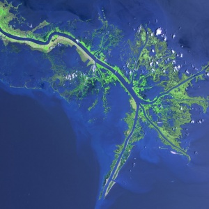 قطعهزمینی در مصب (← مصب) یک رود متشکل از مواد رسوبی. دلتا زمانی تشکیل میشود که شدت جریان رود در محل ورود به دریا کاهش مییابد و منجر به تشکیل مواد رسوبی میشود. مواد مزبور باعث هموار شدن زمین و شاخهشاخه شدن رود میشوند. دلتاهای میسیسیپی، گنگ، براهماپوترا، رون، پو، دانوب، و نیل ازجمله دلتاهای بزرگ بهشمار میروند. دلتاها عموماً بسیار حاصلخیزند، ولی در معرض طغیان رود قرار دارند. علت انتخاب واژۀ دلتا شباهتی است که مصب رود نیل به حروف یونانی دلتا (∆) دارد؛ دلتای رود نیل از نوع دلتای کمانی (قوسیشکل)[۱] است، البته این شکل یگانه نوع دلتا نیست. انواع دیگر دلتا عبارتاند از دلتای پاپرندهای[۲] مانند دلتای رود میسیسیپی، و دلتای کِشَندی (خطی)[۳] مانند دلتای رود مکونگ که در آن مواد رسوبی در یک سوی جریان رود جمع میشوند.