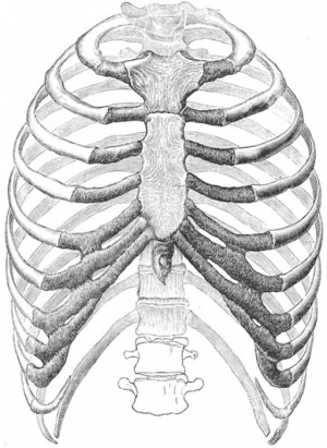 (یا: استخوان پهلو) استخوانی بلند و معمولاً خمیده که در مهرهداران[۱] از ستون مهرهها[۲] بهصورت جانبی امتداد مییابد. اغلب ماهیها[۳] و بسیاری از خزندگان[۴] در قسمت عمدۀ ستون مهرهها دارای استخوان دندهاند، اما در پستانداران[۵]، دندهها فقط در ناحیۀ قفسۀ سینه وجود دارند. انسان دوازده جفت دنده دارد. دندهها از قلب و ششها محافظت میکنند و باعث تسهیل در انبساط و انقباض قفسۀ سینه میشوند. هر جفت از دندهها در قسمت پشتی به یکی از مهرههای ستون مهره متصل میشود. قسمت جلوی هفت جفت دندۀ بالایی، دندههای حقیقی[۶] یا دندههای مهرهای ـ جناغی[۷]، با غضروف[۸] مستقیماً به استخوان سینه[۹] (جناغ[۱۰]) و سه جفت دندۀ بعدی، دندههای کاذب[۱۱] یا مهرهای ـ دندهای[۱۲]، با غضروف به انتهای دندۀ بالایی متصلاند. دو جفت دندۀ آخر، دندههای آزاد[۱۳]، در بخش جلو بهجایی متصل نیستند. پردۀ حجاب حاجز (دیافراگم)[۱۴] و عضلات بین دندهای مجاور مسئول حرکاتی تنفسیاند که ششها را از هوا پر میکند.