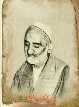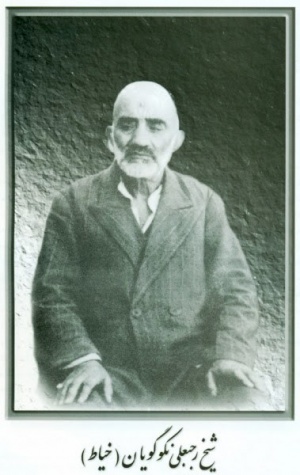 عارف ایرانی. در ۱۲سالگی پدرش درگذشت و از خردسالی بهکار پرداخت. سپس به خیاطی روآورد و تا آخر عمر این پیشه را رها نکرد. بعدها به نکوگویان تغییر نام داد، و به جناب شیخ شهره شد. برخی او را درشمار برجستهترین عارفان این قرن دانستهاند. شاگردان اندکی میپذیرفت و مدرّسی و حمید فرزام درشمار همین تلامیذند. مقبرۀ او در گورستان ابن بابویۀ تهران است.