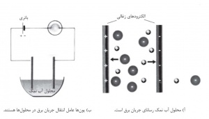 جریان الکترونهای آزاد با بار منفی در مواد. عبور بارهای الکتریکی از هر مادهای منجربه تولید جریان الکتریکی میشود. در گازها و مایعات، رسانش به این صورت ظاهر میشود که یونهای حامل بار مثبت در یک جهت، و بارهای منفی در جهت مخالف به جریان درمیآیند. در نیمرساناهایی مثل سیلیسیم، رسانش مستلزم جاریشدن الکترونهای منفی و حفرههای مثبت است. طبق قرارداد، حرکت بار الکتریکی مثبت از نقطهای با پتانسیل بالا به پتانسیل پایینتر را جریان میگویند. فلزات دربردارندۀ الکترونهای آزاد زیادیاند که بهآسانی بر قید اتمهای مادر غلبه میکنند و به حرکت درمیآیند. به همین علت، فلزات را رساناهای خوب بهشمار میآورند. در جامدات دیگر، مقیدبودن الکترونها در اتمها قویتر، و رسانش کمتر است. افزایش دما در این مواد الکترونهای بیشتری را آزاد میکند و درنتیجه، رسانش غیر فلزات با افزایش دما افزایش مییابد. رسانش در گازها و بسیاری از مایعات، متضمن جریان الکترونها و نیز جابهجایی اتمها یا گروههای اتمی است. هنگامیکه نمکی، مثل سدیم کلرید، در آب حل میشود، هریک از اتمهای کلر با گرفتن یک الکترون بار منفی میگیرند. در این حالت، هریک از اتمهای سدیم با ازدستدادن یک الکترون بار مثبت پیدا میکنند. اینگونه اتمهای باردار یا یونها میتوانند درون مایع به حرکت درآیند و الکتریسیته را از نقطهای به نقطۀ دیگر انتقال دهند. در شرایط عادی، گازها را با تقریب، کاملاً نارسانا درنظر میگیرند. گازها را براثر تابشدهی پرتوهای ایکس یا تابش پرتوزا میتوان یونیده کرد. گازها در دماهای زیاد، مثلاً در قوس الکتریکی[۱]، یا در فشارهای کم، مانند لامپهای تخلیۀ الکتریکی[۲]، با سهولت بیشتری حالت رسانندگی پیدا میکنند. بعضی فلزات، مثل سرب، در دماهای بسیار کم تقریباً به رسانای کامل تبدیل میشوند و اگر در حلقهای از این فلز، در حالت ابررسانندگی[۳]، جریانی برقرار شود، این جریان بدون نیاز به تأمین انرژی برای مدت زمان طولانی دوام خواهد یافت. در موارد دیگر، عبور جریان از جسم رسانا همراه با اتلاف انرژی و تولید گرماست. حفظ جریان مستلزم تأمین مداوم انرژی است. در اطراف جسم رسانایی که حامل جریان الکتریکی است، همیشه میدانی مغناطیسی[۴] پدید میآید.