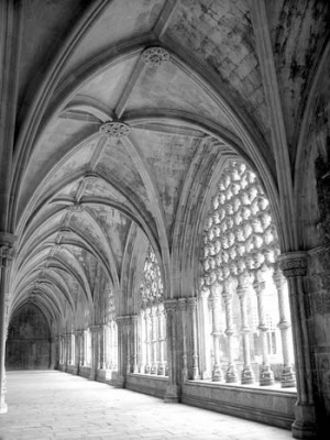 در معماری، حیاط داخلی چهارگوشی که راهروهای سرگشاده یا سرپوشیده، برای در پناه ماندن از باران آن را احاطه کردهاند. رواقِ صومعه به ساختمان دیر، صومعه، کلیسای جامع، و اغلب به کالجها متصل است. کلیسا از طریق همین رواقها به دیر یا صومعه راه دارد. رواق صومعه را اغلب در جبهۀ جنوبی کلیسا میساختند تا آفتابگیر باشد. فضای مرکزی آن را معمولاً محوطهای مربعشکل و چمنکاریشده اشغال میکرد. در قرون وسطا کلیسا در یک طرفِ رواق، و غذاخوری در طرف دیگر آن واقع بود، و جبهههای شرقی و غربی به تالار شورای کلیسا[۱]، انبارهای مواد غذایی، و سرداب[۲]ها اختصاص داشت. تقریباً همۀ خوابگاهها در طبقۀ بالا قرار داشتند. در طرفی که رو به صحن سرگشاده بود، ستونها و قوسهایی که گاه با حجاریهای ظریف و پیچیده و مشبککاری (توریکاری)[۳]های پرنقش تزیین میشدند، سقف رواق را، که معمولاً قوسیشکل بود، نگه میداشت. در سنت جان لاتران[۴]، رُم؛ مونرآله[۵]، سیسیل؛ و کامپو سانتو[۶]، پیزا[۷]؛ رواقهای زیبایی وجود دارد.
