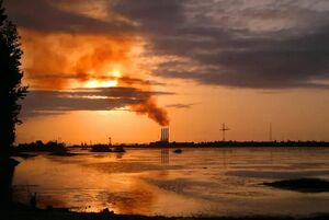 نمایی از تالاب لپو زاغمرز و نیروگاه شهید سلیمی نکا