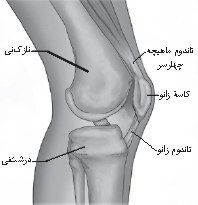 مفصل بین ران و ساق پا. این مفصل از سه سطح مفصلی استخوان ران[۱]، درشتنی[۲] (استخوان ساق پا)، و کشکک زانو[۳] تشکیل شده است. اصولاً حرکت مفصل زانو مثل حرکت مفصل لولایی[۴] است، هرچند در حالت نیمهخمیده امکان حرکت چرخشی محدودی دارد. بخش عمدۀ سطح لقمه[۵]ها یا کوندیلهای استخوان ران سطح مفصل زانو را تشکیل میدهد. این لقمهها با یک فرورفتگی عمیق از یکدیگر جدا شدهاند. شیارهای عرضی کمعمق محدودۀ مفصل بین لقمهها و کشکک را مشخص میکنند. منیسک[۶]ها دو غضروف نیمههلالیاند که در هر طرف عمق سطح مفصل درشتنی را افزایش میدهند. کشکک استخوانی است قلبیشکل که در بالا پهن و مقعر است و برآمدگی مدوری آن را به دو سطح مفصلی تقسیم میکند. قسمت پایین کشکک زبر است و در تشکیل مفصل شرکت ندارد. مجموعهای از رباط[۷]ها، با ساختمان و حرکات پیچیده، مفصل را تقریباً کامل احاطه کردهاند. بزرگترین غشای زلالی[۸] و ترشحکنندۀ مایع مفصلی بدن این مجموعه رباطها را میپوشاند. در انسان، سازوکار این مفصل با ایستادن در حالت قائم تطبیق یافته است. بدینمنظور، مفصل در حالت باز[۹] قرار میگیرد.