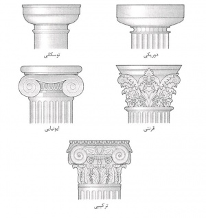 در معماری کلاسیک[۱]، ستون (شامل سرستون[۲]، میلستون[۳] و تهستون[۴]) و پیشانی ستون[۵]، که بهصورت یک کل در نظر گرفته میشود. پنج شیوۀ ستونسازی عبارتاند از دوریکی[۶]، ایونیایی[۷]، کورَنتی (قُرَنْتی[۸])، توسکانی[۹] و ترکیبی[۱۰]. قدیمیترین شیوۀ ستونسازی، شیوۀ دوریکی یا دوریسی (بدون تهستون) بود، که سابقۀ آن به پیش از قرن ۵پم بازمیگردد،؛ پس از آن شیوۀ ایونیایی (با سرستونهای طوماری) سر برآورد، و نخستینبار در آسیای صغیر تجلّی یافت. شیوۀ کورنتی (با سرستونهای برگدار) از پایان قرن ۵پم پدیدار شد؛ اما شیوۀ ترکیبی نخستینبار در طاق تیتوس[۱۱] در روم، در ۸۲م بهکار رفت. هیچ ستون توسکانی از عهد باستان برجا نمانده، و از قرار معلوم این شیوه، در دوران اتروسکی[۱۲]ها باب شده است. سباستیانو سرلیو[۱۳]، زادۀ ایتالیا، در رسالهاش در باب معماری (۱۵۳۷ـ۱۵۵۱)، هر پنج شیوه را بهتفصیل شرح داده است.