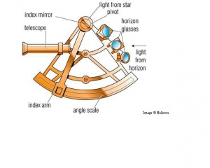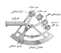 اسباب ناوبری[۱] برای تعیین عرض جغرافیایی، از طریق اندازهگیری زاویۀ بین بعضی از اجرام سماوی و افق. این اسباب را جان هدلی[۲] (۱۶۸۲ـ۱۷۴۴) در ۱۷۳۰ اختراع کرد و فقط در هوای صاف قابل استفاده است. وقتی از پشت شیشۀ افق[۳] سمت راست، که نیمی از آن شفاف و نیم دیگر آینهای است، به افق نگاه کنیم، نور ستاره را با تنظیم آینۀ شاخص[۴]، همزمان در بخش آینهای سمت چپ میبینیم. در این حالت، زاویۀ ستاره با افق از مقیاس مدرج خوانده میشود.