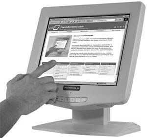 نوعی صفحه نمایش رایانه که میتواند محل لمس صفحه از سوی کاربر را تشخیص دهد. کاربر با انتخاب صفحه میتواند گزینهها را انتخاب کند یا مکاننما[۱] را جابهجا کند. استفاده از صفحه نمایشهای لمسی در رایانههای شخصی چندان متداول نیست چون درنتیجۀ کار با آنها کاربر باید مدت طولانی دست خود را بدون تکیهگاه در هوا نگه دارد. علاوهبر این، صفحههای نمایش لمسی نمیتوانند درجه وضوح بالا داشته باشند و کاربر هیچوقت نمیتواند دقیقاً یک نقطه مشخص را لمس کند. استفاده از صفحات نمایش لمسی در کیوسکهای اطلاعرسانی و دستگاههای خودپرداز بانک[۲] بسیار متداول است.