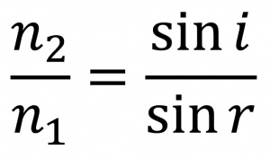 معیاری برای شکست[۱] پرتو نور، گذار آن از یک محیط شفاف به محیطی دیگر. اگر زوایۀ تابش[۲] را در محیط اول با i و زاویۀ شکست را در محیط دوم با r نشان دهیم، نسبت بین ضریب شکست‌های این دو محیط چنین است: (فرمول ۱) همچنین، این ضریب برابر با حاصل تقسیم سرعت انتشار نور در محیط دوم به سرعت نور در محیط اول است که مقدار آن با تغییر طول موج نور تغییر می‌کند.