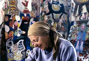 مکرمه قنبری در کنار آثارش