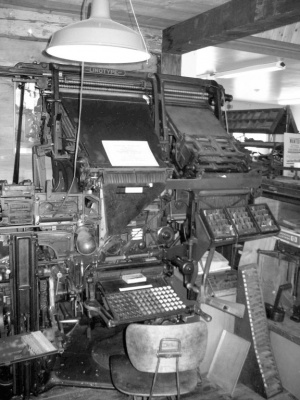 نام تجاری نوعی ماشین حروفچینی. زمانی در روزنامهنگاری کاربرد گستردهای داشت. این ماشین را اوتمار مرگنتالر[۱] آلمانیتبار در ایالات متحد امریکا اختراع کرد (۱۸۸۴). اکنون سیستمهای حروفچینی رایانهای جای آن را گرفتهاند.