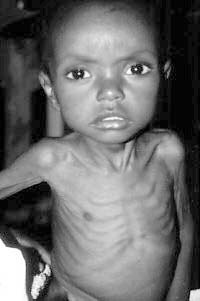 لاغری شدید کودکان. در این حالت، کودک رنگپریده بهنظر میرسد، پوستش چروکیده میشود، و استعداد ابتلا به عفونتها در او افزایش مییابد. علت بروز این حالت ممکن است کمغذایی[۱]، سوء جذب[۲] یا بیماری مزمن، مخصوصاً بیماریهای انگلی مناطق گرمسیری، باشد.