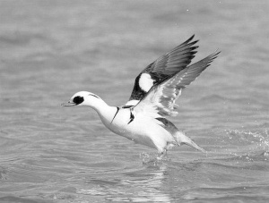 گونۀ Meryellus albellus، از اردکهای ماهیخور، از خانوادۀ اردکها[۱]، راستۀ غازشکلان[۲]. پرندۀ نر عمدتاً سفید و دارای نشانهایی سیاه است. ماده سفیدرنگ و دارای نشانهایی مایل به قرمز است. در شمال آسیا و اروپا، از کامچاتکا[۳] تا لاپلاند[۴]، ساکناند. غالباً زمستان را در بریتانیا میگذرانند. در ایران، از اردکهای ماهیخور خانوادۀ مرغابی سه گونه با نامهای مرگوس سفید، مرگوس کاکلی، و مرگوس بزرگ یافت میشود. این پرندگان هنگام برخاستن از آب، ابتدا مسافتی را بالزنان روی آب میدوند.