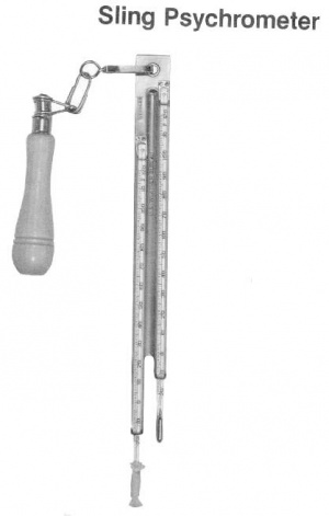 از ابزارهای گوناگون برای اندازهگیری مقدار بخار آب، یا رطوبت نسبی جو. نمسنج دمایی از دو دماسنج یکسان تشکیل میشود: دماسنج خیسی که حباب آن با پارچۀ موسلین پوشانده شده است و میتوان آن را با آب مقطر مرطوب کرد، و دماسنج خشک. وقتی پارچه مرطوب باشد و هوا در اطراف دماسنجها آزادانه جریان داشته باشد، دماسنج خیس دمای پایینتری را نسبت به دماسنج خشک، یا دمای واقعی هوا، نشان میدهد که علت آن سرمایش ناشی از تبخیر آب از پارچه است. هر چه هوا خشکتر باشد، تبخیر شدیدتر است و در نتیجه، دماسنج خیس دمای پایینتری را نشان میدهد. درجدولهای نمسنجی، متغیرهای گوناگونی، ازجمله رطوبت نسبی براساس دمای خشک و کاهش دمای خیس تعادلی، ذکر میشوند. در نمسنجهای مدرن، از حسگرهای الکترونیکی مخصوص استفاده میکنند.