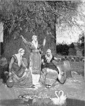در اساطیر اسکاندیناوی، سه الهۀ[۱] تقدیر با نام‌های اورد[۲]، (الهۀ گذشته)، ورداندی[۳] (الهۀ حال) و اِسکولت[۴] (الهۀ آینده)، که سرنوشت آدم‌ها را در لحظۀ تولدشان رقم می‌زدند. نورن‌ها در چاه اورد[۵]، چشمۀ جوانی[۶]، در یکی از ریشه‌های ایگدراسیل[۷] سکونت داشتند؛ ایگدراسیل درخت زبان‌گنجشک تناوری بود که به جهان‌های ۹ گانه[۸] استحکام می‌بخشید و خود از چشمۀ‌ جوانی نیرو می‌گرفت. نگهبانان درخت پیوسته آن را آبیاری می‌کردند.