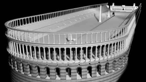 مرکب از دو کلمۀ یونانی «هیپوس» (اسب)، «دروموس» (مسیر). در یونان قدیم، ورزشگاهی برای مسابقات ارابهرانی و سوارکاری (شبیه به سیرک رومیان). معمولاً ۱۸۰-۲۱۵ متر طول و حدود ۱۲۰ متر عرض داشت، یک سر آن نیمدایره و سَرِ دیگر مربع بود. ردیف صندلیهای تماشاگران همۀ محوطه به استثنای انتهای چهارگوش را احاطه میکرد، که نقطۀ شروع و پایان مسابقه بود. در پایین مرکز محوطه، مسیر تقسیم میشد و در دو انتهای آن ارابهها دور میزدند، مانوری که به مهارتی فوقالعاده نیاز داشت. بزرگترین هیپودروم عهد کهن در قسطنطنیه[۱] بود که بین (۲۰۳-۳۳۰م) ساخته شد و مرکز فعالیتهای سیاسی شد. هواداران رنگهای گوناگونی که ارابهها برای شرکت در مسابقه استفاده میکردند در جهتهای مخالف یکدیگر مینشستند که غالباً کارشان به خشونت میکشید. بقایای آن سازه هنوز پابرجاست: تزیینات آن شامل ستون هرمیشکل سنگی، سهپایهای افعیشکل از دِلفی[۲]، و اسبهای مفرغی است که اکنون نمای کلیسای سان مارکو[۳] وِنیز را تشکیل میدهند.