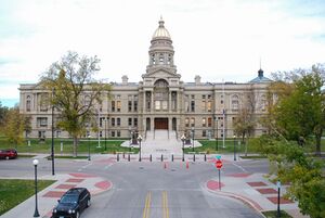 ایالتی در غرب امریکا، با 253,335 کیلومتر مربع مساحت و 587,618 نفر جمعیت (۲۰۲۴)‌. در ارتفاع 2,040 متری از سطح دریا واقع شده است. در ۱۸۹۰، ایالت چهل و چهارم بود که به اتحادیه پیوست. یکی از ایالت‌های کوهستانی[۱] است و از شرق به نبراسکا[۲] و داکوتای جنوبی[۳]، از شمال به مونتانا[۴]، از غرب به مونتانا، آیداهو[۵]، و یوتا[۶]، و از جنوب به یوتا و کلرادو[۷] محدود است. مرکز آن شاین[۸] است. شهرهای آن عبارت‌اند از کاسپر[۹] و لرمی[۱۰].