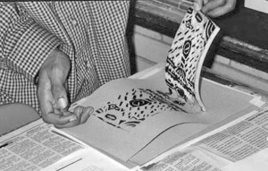 پدیدآوردن تصویر یا طرح با استفاده از چاپ از روی یک لوح (قالب چوبی[۱]، لوح سنگی، و یا ورق فلزی)، که رنگ یا جوهر را نگه میدارد. قدیمیترین نوع چاپ، باسمۀ چوبی[۲] است، که در قرون وسطا[۳] در اروپا متداول بوده است. حکاکی خطی[۴] (از قرن ۱۵م) و باسمۀ تیزابی[۵] (از قرن ۱۷) متعاقب باسمۀ چوبی پدید آمد. چاپ رنگی با قالبهای چوبی از قرن ۱۸ در ژاپن رواج یافت. چاپنقش سنگی[۶] در ۱۷۹۶ ابداع شد. آلبرشت دورِر[۷]، هنرمند آلمانی، حکاکیهای خطی نظرگیری آفرید و رامبرانت[۸]، نقاش هلندی، از اولین هنرمندان برجستهای بود که باسمههای تیزابی ساخت.