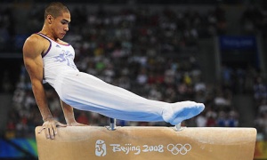 (در یونان باستان گومْنوس یا ژیمنوس به معنای برهنه بود و ژیمناسیا مدارس آموزش قهرمانان) تمرینات بدنی که در آغاز برای تندرستی و ورزش انجام میشد. ژیمناستیک مردان شامل رشتههای بارفیکس، پارالل[۱]، خرک[۲]، خرکِ حلقه[۳]، دار حلقه[۴] و حرکات زمینی و ژیمناستیک زنان شامل رشتههای بارفیکس دو میلهای[۵]، خرک پرش از پهلو[۶]، میلۀ موازنه[۷] و حرکات زمینی است. ورزشهای اکروباتی[۸] نیز ورزشهایی پرطرفدارند که بهصورت دو، سه، یا چهار نفره همراه با موسیقی انجام میگیرند و در آنها تأکید بر حرکات موزون، تعادل و زمانبندی است. ژیمناستیک موزون[۹] را نیز بهصورت حرکات موزون افراد یا گروههای شش نفرۀ دختران با وسایلی کوچک نظیر روبان، توپ و حلقه انجام میدهند. در قرن ۱۹ ژیمناستیک بهمنزلۀ وسیلهای برای تقویت نظامی در آلمان احیا شد. متخصصان تعلیم و تربیت ازجمله فریدریش فروبل[۱۰] و یوهان پستالوزی[۱۱] نیز از آن استفاده کردند و یکی از دروس مدارس شناخته شد. امروزه ژیمناستیک از ورزشهای پرطرفدار و تماشایی است.