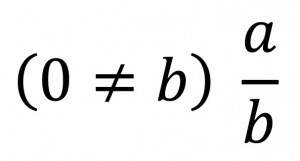 کسری با صورت[۱] و مخرجی[۲] متشکل از اعدادی صحیح[۳]، و مخرجِ مخالف صفر. این کسر را به‌شکل نسبتی مانند(فرمول ۱) می‌نویسند.