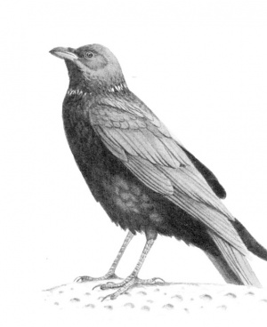 (یا: غراب) هر یک از چندین کلاغ[۱] بزرگ، از جنس Corvus، خانوادۀ کلاغ[۲]، راستۀ گنجشکسانان[۳]. طول غراب معمولی[۴] CorvusCorax به حدود ۶۰ سانتیمتر میرسد و فاصله دو بال آن نزدیک یک متر است. کلاغسیاه پرهایی سیاه و پرزرق و برق دارد. منقار و دهان، زبان و پاهایش نیز سیاهاند. این پرنده مردارخوار است و فقط در نیمکرۀ شمالی یافت میشود. لانهاش را در صخرهها یا در شاخۀ درختهای بلند میسازد و لانهاش ساختاری حجیم دارد. در لانه چهار یا پنج تخم به رنگ سبز با خالهای قهوهای میگذارد. ماده حدود ۲۱ روز روی تخم میخوابد. غرابها را، بنابه سنت، با مرگ مرتبط میدانند؛ احتمالاً تجمع زیاد آنها در اطراف مردار باعث این نظر شده است. با این همه، از نظر رفتاری گونهای منزویاند. در ایران. از خانوادۀ کلاغ سیزده گونه، ازجمله جیجاق، زاغی، انواع زاغ، انواع کلاغ، و دو گونه غراب یافت میشود. این پرندگان اجتماعیاند. در زیستگاههای گوناگون بهسر میبرند و از نظر هوش زبانزدند.