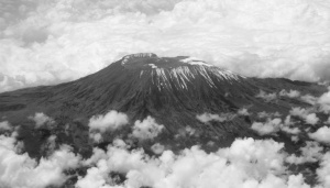 آتشفشانی در تانزانیا و مرتفعترین کوه در افریقا، به ارتفاع ۵,۸۹۵ متر. بین دریاچۀ ویکتوریا[۱] و ساحل شرقی افریقا قرار گرفته است. به دو قلۀ کیبو[۲]، با ارتفاع ۵,۸۹۵ متر، و ماوِنزی[۳]، با ارتفاع ۵,۱۴۹ متر، منتهی میشود، که هر دو آتشفشانهای خاموشاند. هانس مایر[۴]، جغرافیدان آلمانی، و لودویگ پورچلر، کوهنورد اتریشی، اولین کسانی بودند که در ۱۸۸۹ به قلۀ آن صعود کردند. قطر دهانۀ کیبو ۱,۹۸۱ متر و عمق آن ۱۹۸ متر است. نزدیکترین آبادی به آن مُشی[۵]، در جنوب، است. تراکم جمعیت در دامنهها بسیار زیاد است و کشاورزی در آن رونق فراوان دارد و در دامنههای شرقی و جنوبی، موز و قهوه کشت میشود. از ارتفاع ۱,۸۰۰ تا ۳۰۰۰ متری کوه پوشیده از کمربند جنگلی به عرض ۸ تا ۱۱ کیلومتر است. حدود ۹۰۰ متر بالاتر از آن، علفزار و سپس قلۀ کوه پوشیده از برف است. مرز کنیا در بخش شمالی این کوه قرار دارد؛ در اینجا میزان ریزش باران کمتر است و جنگل انبوه و جمعیت زیادی ندارد.