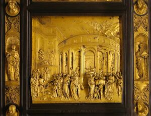 | آثار | کتاب تفاسیر هنری (۱۴۵۰م)، درهای مفرغی تعمیدگاه کلیسای سانتا ماریا دل فیوره |