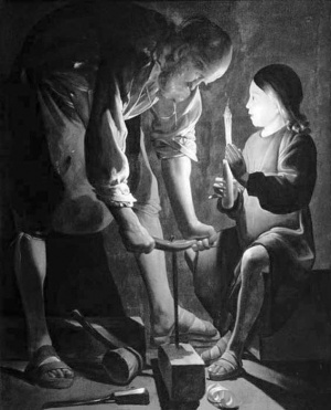 در عهد جدید[۱]، شوهر مریم عذرا[۲]، از تبار داود[۳] از سبط یهودا[۴] و دارای شغل نجّاری. اگرچه مسیحیان عیسی مسیح (ع) را پسر یوسف[۵] نمیدانند، یوسف پدر قانونی او بود. در روایات کاتولیک، او پیشتر زن و فرزندانی داشت و مردی سالخورده بود که با مریم ازدواج کرد.