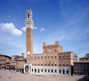 (سییِنا) واقع در توسکانِ<ref>Tuscany</ref> | (سییِنا) واقع در [[توسکان|توسکانِ]]<ref>Tuscany</ref> [[ایتالیا]]، در حدود ۵۰کیلومتری جنوب [[فلورانس]]<ref>Florence</ref>، با ۵۷,۷۰۰ نفر جمعیت (۱۹۹۰). [[اتروسک|اتروسک]]<nowiki/>ها آن را بنا کردند، دارای معماری [[قرون وسطا]]<nowiki/>یی نظیر کلیسای جامعی بهسبک [[گوتیک، معماری|گوتیک]] از قرن ۱۳م است که ناتمام مانده است؛ چندین نمونه از مکتب نقاشی سیِنایی<ref>Sienese</ref> دارد که در قرون ۱۳ تا ۱۶ رواج داشت. این شهر در زمان اوگوستوس شهرک رومی بود. در قرن ۱۲م به شهر آزاد تبدیل شد. از ۱۳۵۵ تا ۱۵۵۹ ثبات سیاسی نداشت و درگیر جنگ خارجی بود. از دهۀ ۱۵۲۰ تا ۱۵۵۲ شدیداً تحت نفوذ [[اسپانیا]] بود و سپس به دوک فلورانس واگذار شد. بنای کلیسای جامع آن بهعلت شیوع [[طاعون]] در ۱۳۴۸م ناتمام ماند. پالاتسو پوبلیکو<ref>Palazzo Pubblico</ref>، که بهشیوۀ گوتیک از آجر ساخته شده، دارای برجی به ارتفاع ۱۰۰ متر با نقاشیهای دیدنی است. چندین کاخ و ویلای باشکوه نیز دارد، دانشگاه آن در ۱۲۴۷م تأسیس شد. | ||