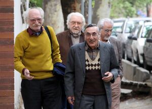 کامران فانی، محمود دولت‌آبادی (نفرات جلو)، نصرالله پورجوادی و داریوش شایگان در آستانه ورود به کانون زبان فارسی؛ شب اعلام و اصطلاحات دانش‌گستر؛ 12 اردیبهشت 1396ش