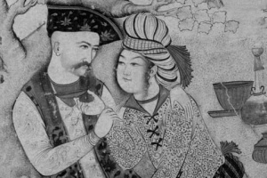 شاه عباس در کنار ساقی، اثر محمدقاسم مصوّر تبریزی