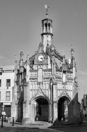 کلیسای جامع. کار ساختن کلیسای جامع، که در ۱۱۰۸م وقف شد، از حدود ۱۰۸۰م آغاز شد و پس از آتشسوزیهای ۱۱۱۴م و ۱۱۸۷ تا قرن ۱۲ م ادامه یافت. پردۀ ملیلهدوزیشدهای که صحن محراب را در قسمت دسته سرایندگان میپوشاند کار جان پایپر[۱۰] است، و دو قاب سنگی تراشیده متعلق به حدود ۱۱۴۰م در جنوب راهرو قرار دارند. سالن بزرگِ سبک نورمن آن دارای دو نمازخانۀ کوچک در دو سمت است، و چندین حکاکی زیبای قرون وسطایی و برآمدگیهای تکیهگاه[۱۱] از قرن ۱۴م دارد. همه شیشهها، و برجهای مرکزی و شمال غربی جدیدند. منار مخروطیشکل آن ۸۶ متر ارتفاع دارد. کلیسای جامع دارای یک برج ناقوس جداشدنی غیرعادی (۱۴۳۶) است. قصر اسقفی در مجاورت کلیسا قرار دارد و محوطۀ کلیسا به اتاقهای تارکان دنیا منتهی میشود.